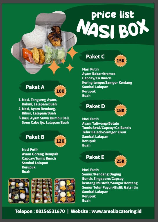 Amelia Catering merupakan penyedia paket nasi box terpercaya di Wates, Kulon Progo, yang siap memenuhi kebutuhan konsumsi untuk berbagai acara — mulai dari rapat kantor, hajatan, arisan, hingga acara keluarga.