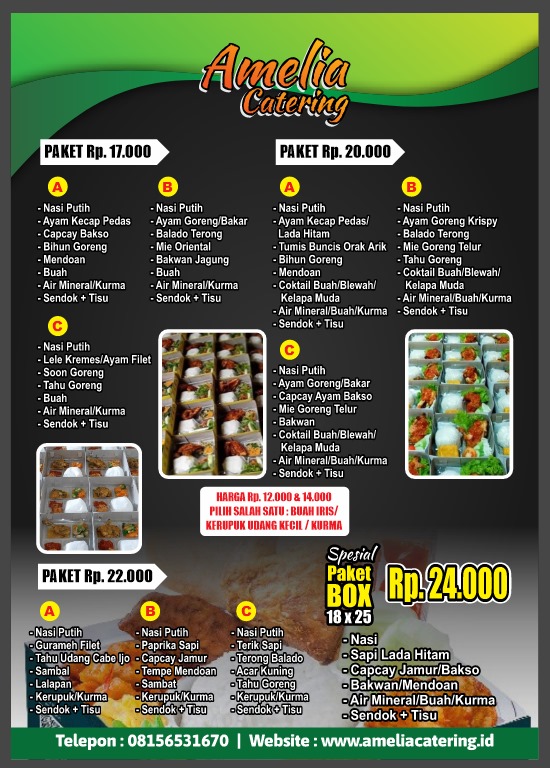 Kami mengutamakan rasa, kebersihan, dan ketepatan waktu, sehingga setiap pesanan tiba dalam kondisi terbaik dan siap disantap. Dengan pilihan menu yang variatif dan harga yang bersahabat, Amelia Catering menjadi solusi praktis bagi Anda yang ingin menyajikan hidangan lezat tanpa repot.